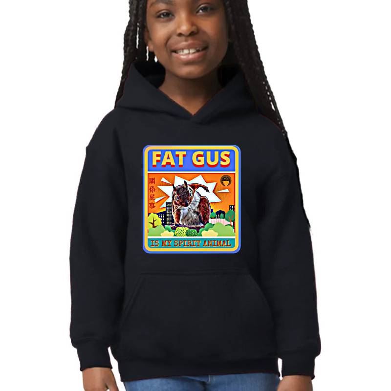 Fat Gus Is My Spirit Animal design artwork printed on Youth Hooded Sweatshirt with latest DTF technology. Our new management team will place serving you. We offer best online shopping experience to our customers with 30 days return and exchange policy. Shop with confidence at T-funny.com