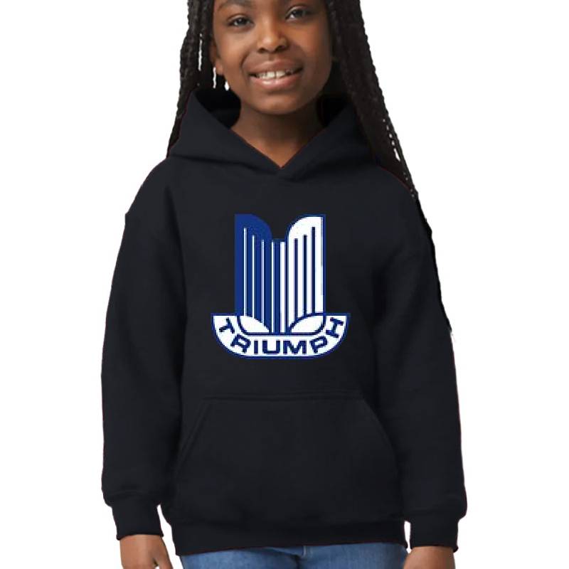 Blue Triumph Logo design artwork printed on Youth Hooded Sweatshirt with latest DTF technology. Our new management team will place serving you. We offer best online shopping experience to our customers with 30 days return and exchange policy. Shop with confidence at T-funny.com