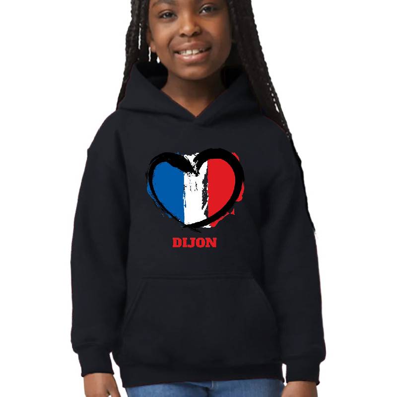 Love French City Dijon. Best Valentines Gift design artwork printed on Youth Hooded Sweatshirt with latest DTF technology. Our new management team will place serving you. We offer best online shopping experience to our customers with 30 days return and exchange policy. Shop with confidence at T-funny.com