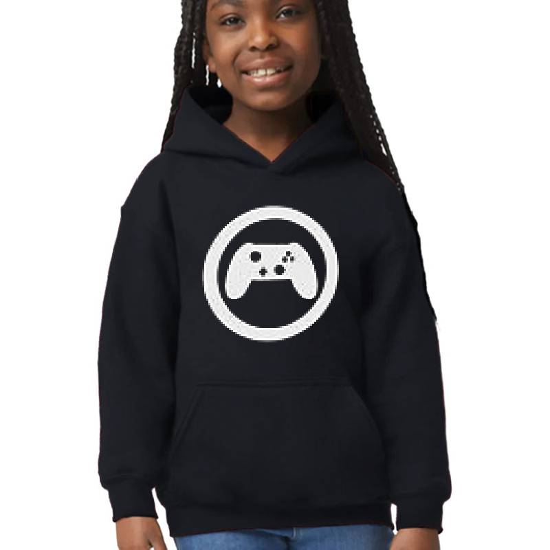 Gaming controller design artwork printed on Youth Hooded Sweatshirt with latest DTF technology. Our new management team will place serving you. We offer best online shopping experience to our customers with 30 days return and exchange policy. Shop with confidence at T-funny.com