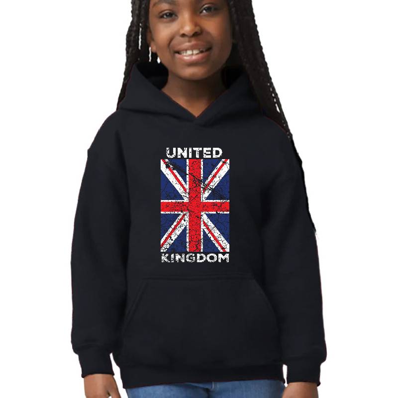 United Kingdom flag design artwork printed on Youth Hooded Sweatshirt with latest DTF technology. Our new management team will place serving you. We offer best online shopping experience to our customers with 30 days return and exchange policy. Shop with confidence at T-funny.com