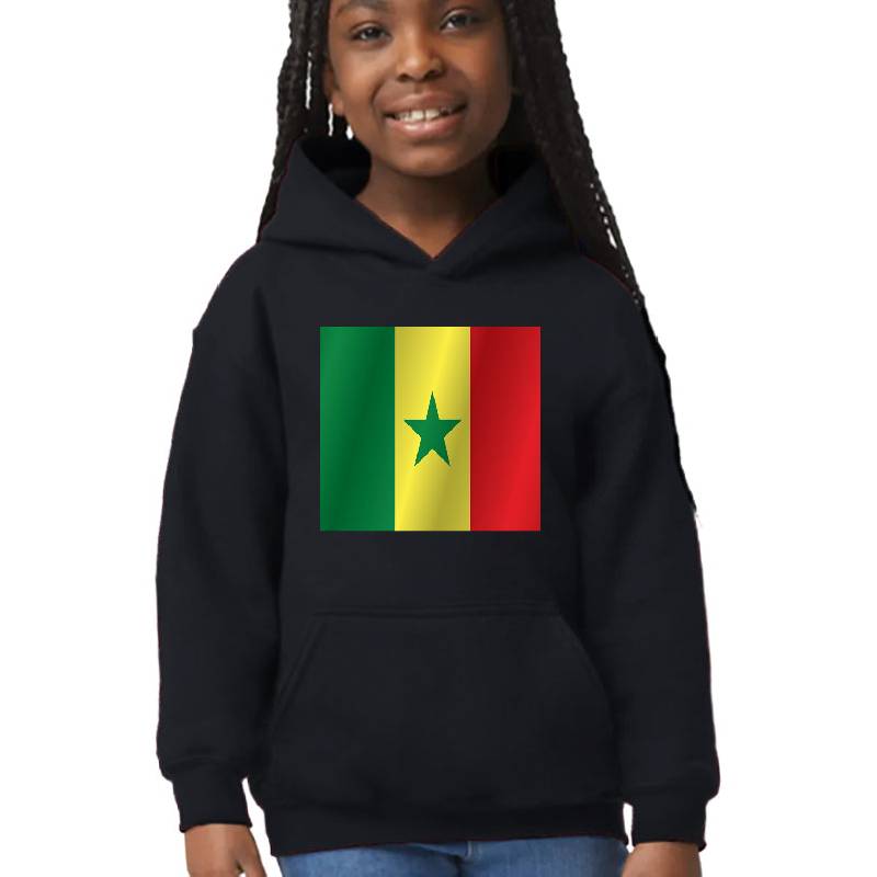 Senegal flag design artwork printed on Youth Hooded Sweatshirt with latest DTF technology. Our new management team will place serving you. We offer best online shopping experience to our customers with 30 days return and exchange policy. Shop with confidence at T-funny.com