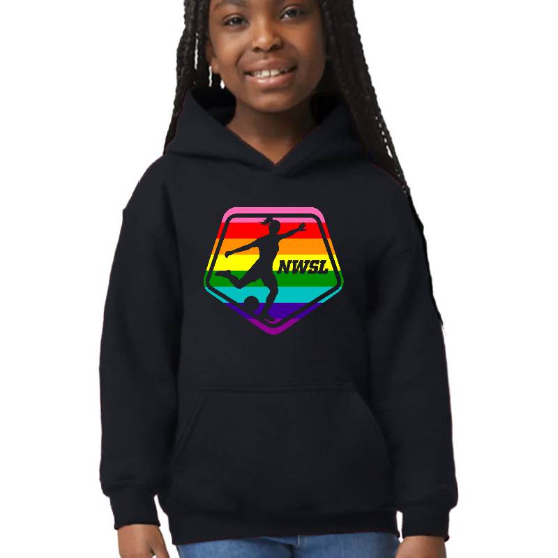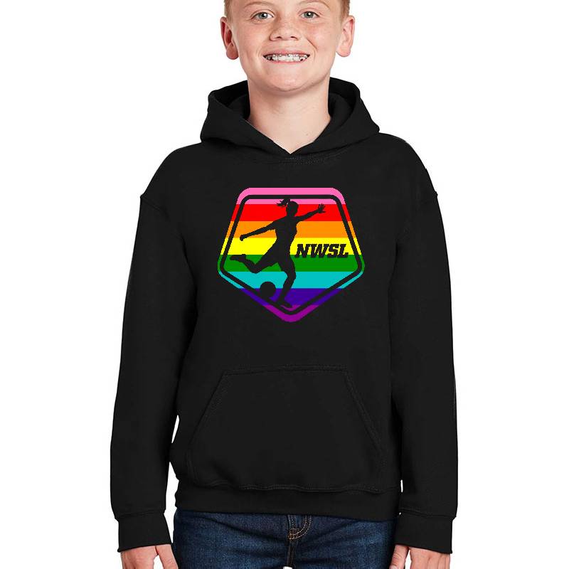 Nwsl Rainbow design artwork printed on Youth Hooded Sweatshirt with latest DTF technology. Our new management team will place serving you. We offer best online shopping experience to our customers with 30 days return and exchange policy. Shop with confidence at T-funny.com