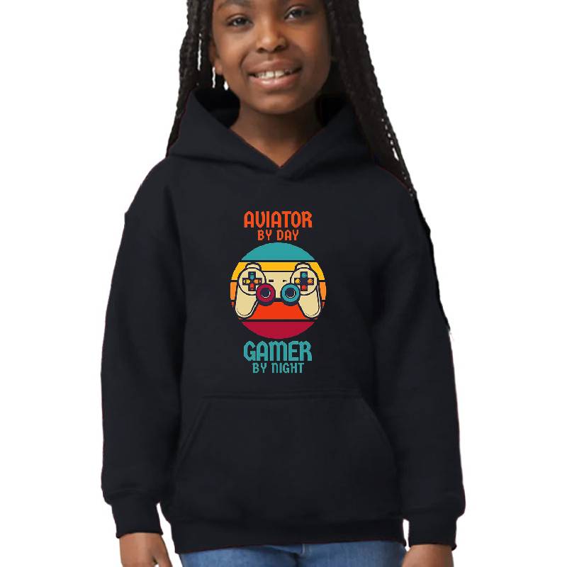 Aviator Gamer design artwork printed on Youth Hooded Sweatshirt with latest DTF technology. Our new management team will place serving you. We offer best online shopping experience to our customers with 30 days return and exchange policy. Shop with confidence at T-funny.com
