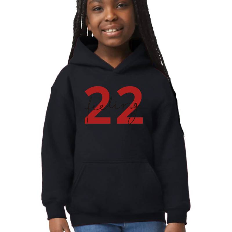 Feeling 22 Inspired By Taylor Swift design artwork printed on Youth Hooded Sweatshirt with latest DTF technology. Our new management team will place serving you. We offer best online shopping experience to our customers with 30 days return and exchange policy. Shop with confidence at T-funny.com
