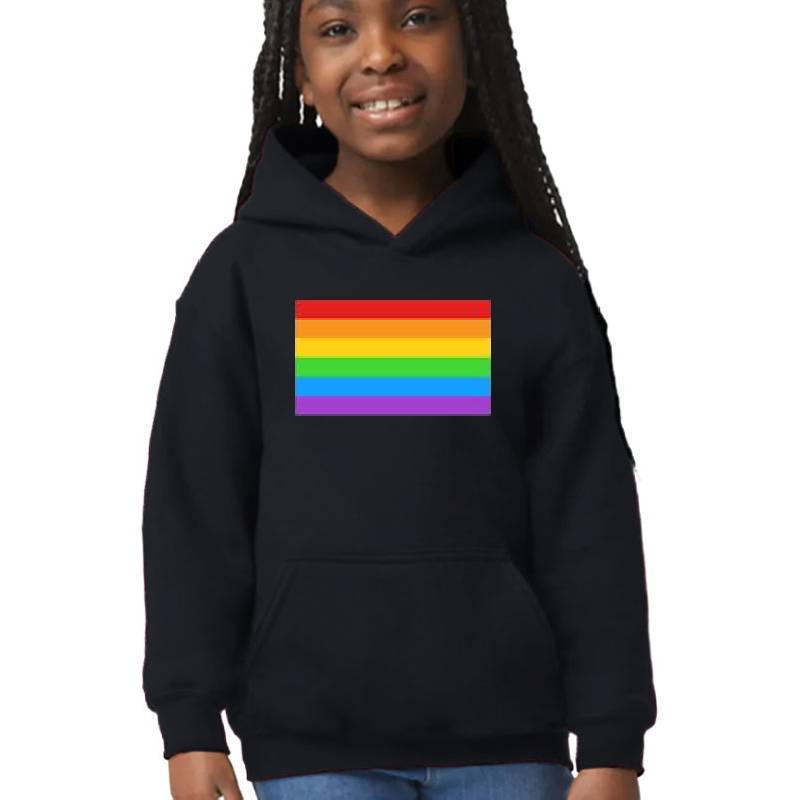 Fancy LGBTQ Rainbow Flag design artwork printed on Youth Hooded Sweatshirt with latest DTF technology. Our new management team will place serving you. We offer best online shopping experience to our customers with 30 days return and exchange policy. Shop with confidence at T-funny.com