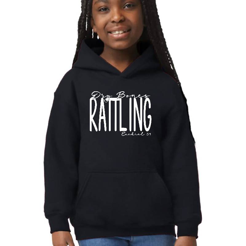 Inspirational Dry Bones Rattling design artwork printed on Youth Hooded Sweatshirt with latest DTF technology. Our new management team will place serving you. We offer best online shopping experience to our customers with 30 days return and exchange policy. Shop with confidence at T-funny.com