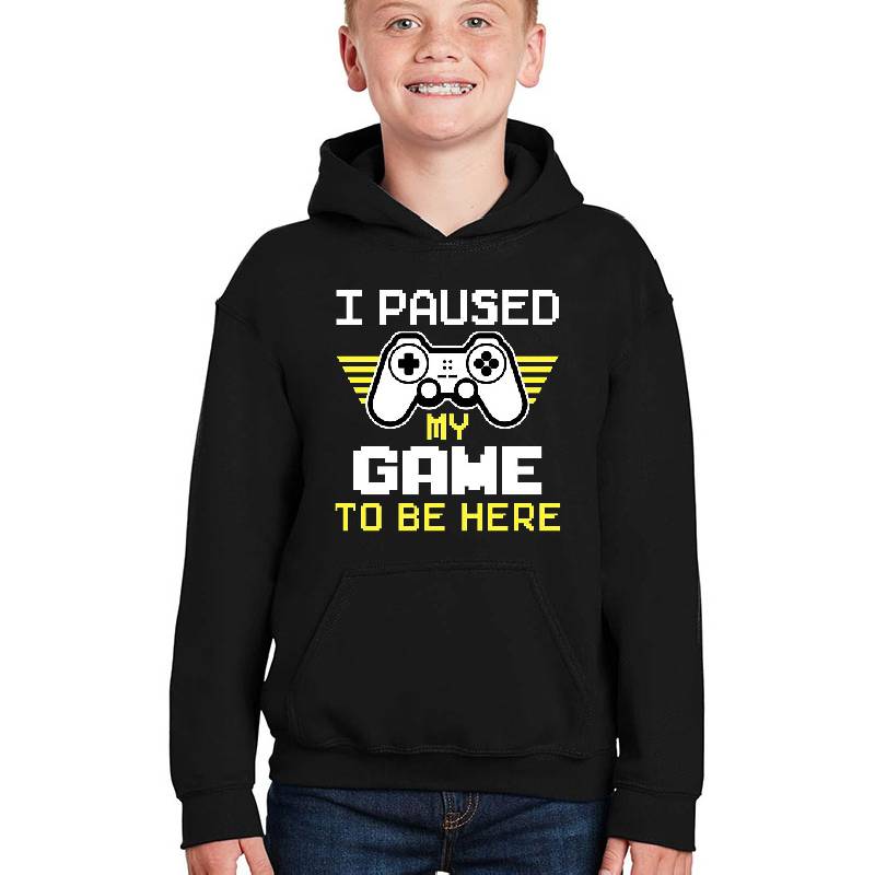 Funny Gamer Controller Teenager I Paused my game to be here design artwork printed on Youth Hooded Sweatshirt with latest DTF technology. Our new management team will place serving you. We offer best online shopping experience to our customers with 30 days return and exchange policy. Shop with confidence at T-funny.com