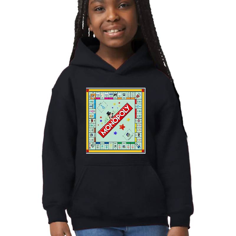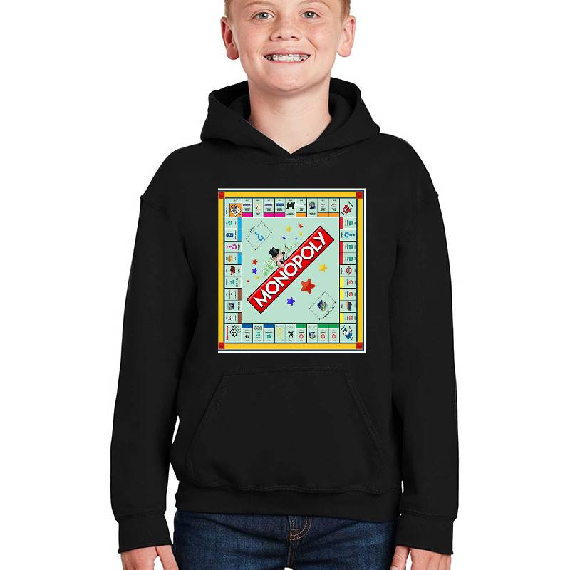 Monopoly Board Game Classic design artwork printed on Youth Hooded Sweatshirt with latest DTF technology. Our new management team will place serving you. We offer best online shopping experience to our customers with 30 days return and exchange policy. Shop with confidence at T-funny.com