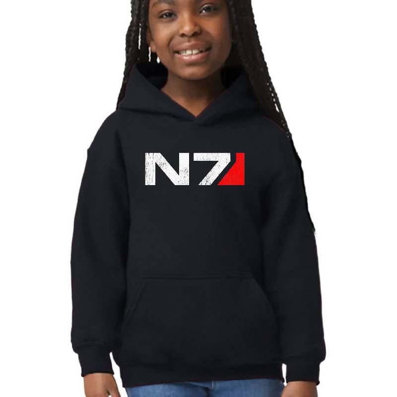 Mass Effect design artwork printed on Youth Hooded Sweatshirt with latest DTF technology. Our new management team will place serving you. We offer best online shopping experience to our customers with 30 days return and exchange policy. Shop with confidence at T-funny.com