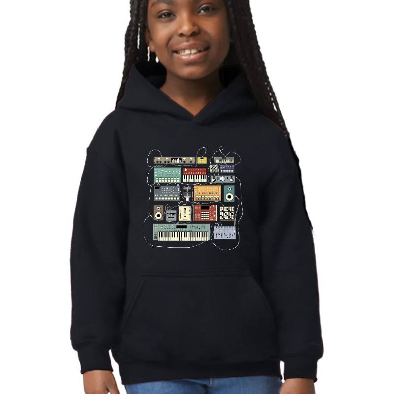 Electronic musician Synthesizer and Drum Machine Dj design artwork printed on Youth Hooded Sweatshirt with latest DTF technology. Our new management team will place serving you. We offer best online shopping experience to our customers with 30 days return and exchange policy. Shop with confidence at T-funny.com