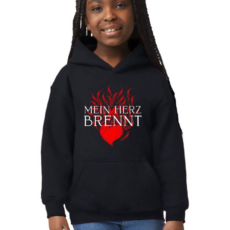 Mein Herz Brennt design artwork printed on Youth Hooded Sweatshirt with latest DTF technology. Our new management team will place serving you. We offer best online shopping experience to our customers with 30 days return and exchange policy. Shop with confidence at T-funny.com