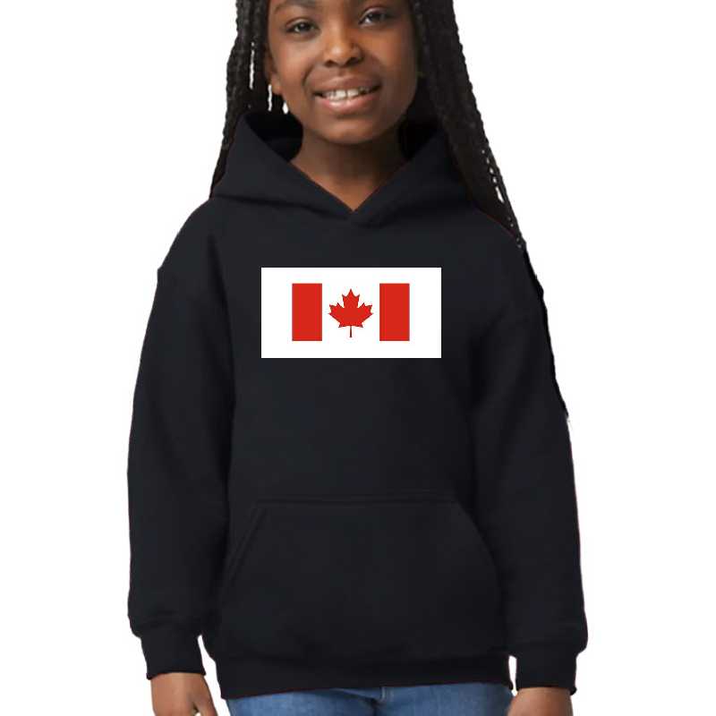 Canada flag design artwork printed on Youth Hooded Sweatshirt with latest DTF technology. Our new management team will place serving you. We offer best online shopping experience to our customers with 30 days return and exchange policy. Shop with confidence at T-funny.com