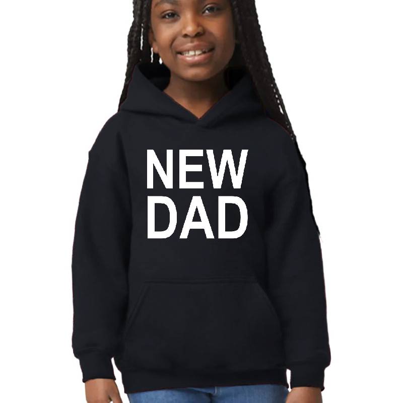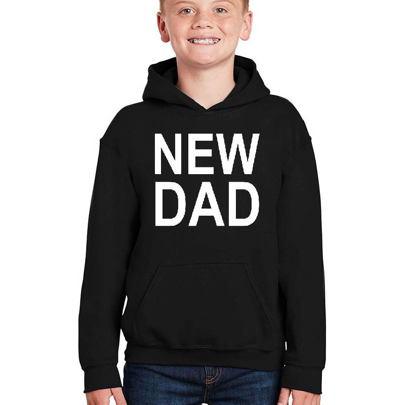 New Dad Father Daddy Baby Newborn design artwork printed on Youth Hooded Sweatshirt with latest DTF technology. Our new management team will place serving you. We offer best online shopping experience to our customers with 30 days return and exchange policy. Shop with confidence at T-funny.com