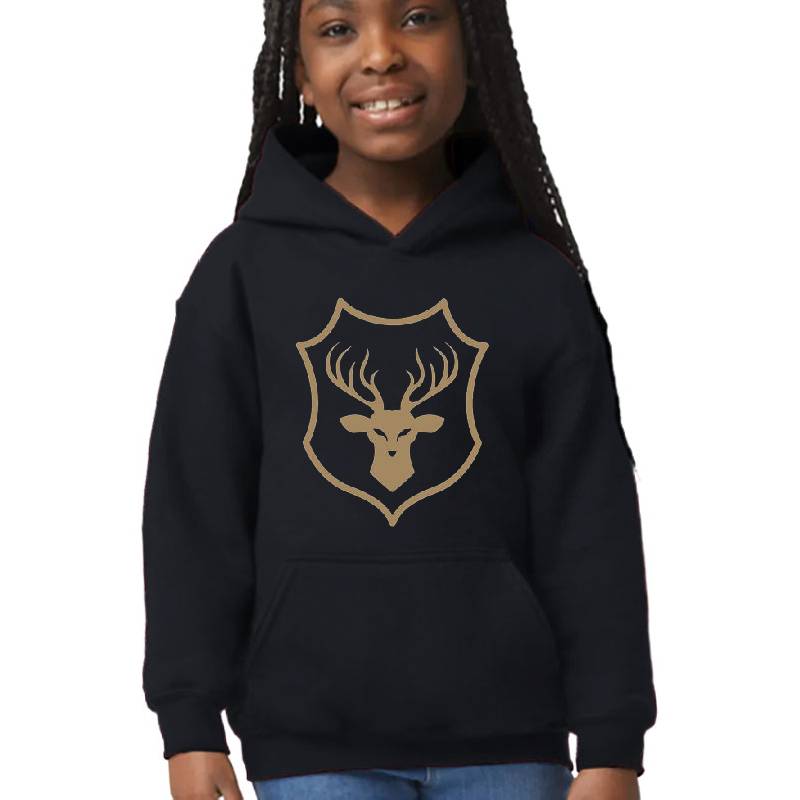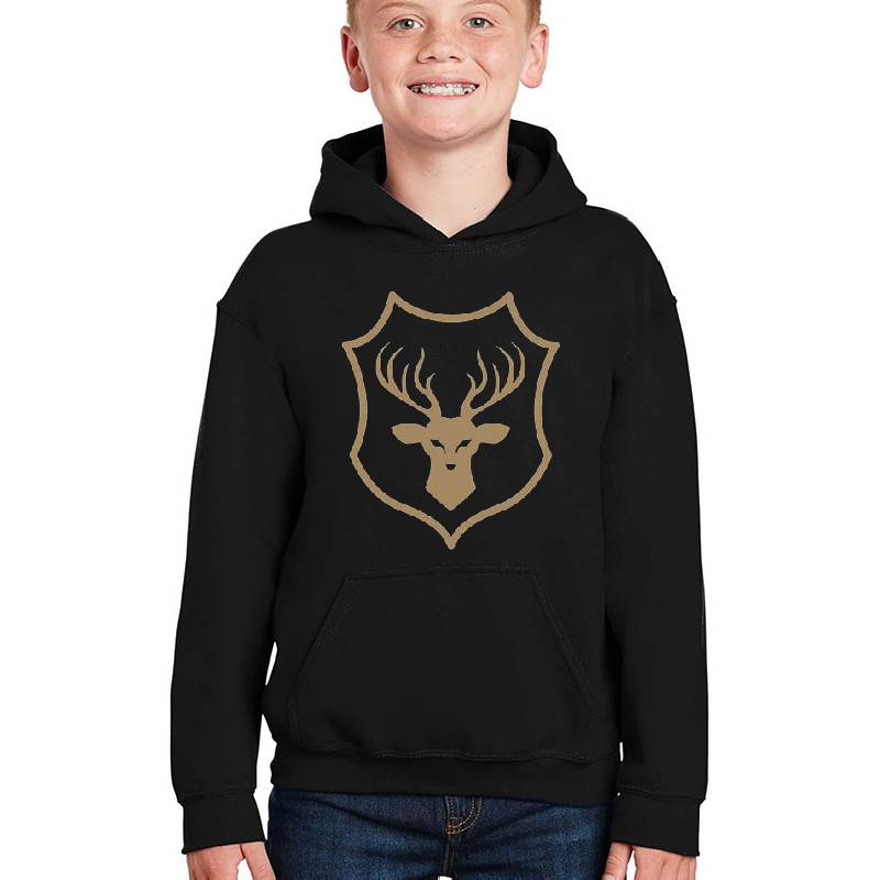 Stag Emblem Silhouette design artwork printed on Youth Hooded Sweatshirt with latest DTF technology. Our new management team will place serving you. We offer best online shopping experience to our customers with 30 days return and exchange policy. Shop with confidence at T-funny.com
