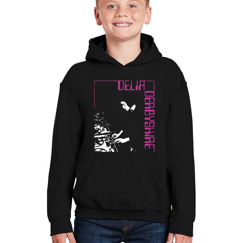 Delia Derbyshire Limited Edition design artwork printed on Youth Hooded Sweatshirt with latest DTF technology. Our new management team will place serving you. We offer best online shopping experience to our customers with 30 days return and exchange policy. Shop with confidence at T-funny.com