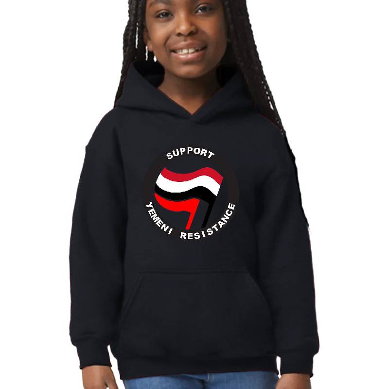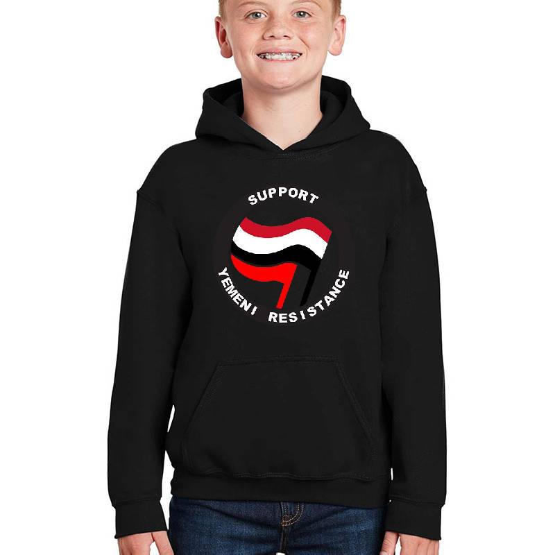 Support Yemeni Resistance design artwork printed on Youth Hooded Sweatshirt with latest DTF technology. Our new management team will place serving you. We offer best online shopping experience to our customers with 30 days return and exchange policy. Shop with confidence at T-funny.com
