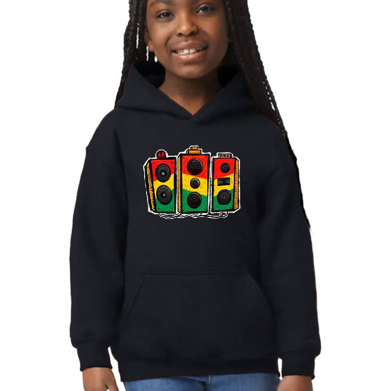 Reggae Sound System Jamaican Music design artwork printed on Youth Hooded Sweatshirt with latest DTF technology. Our new management team will place serving you. We offer best online shopping experience to our customers with 30 days return and exchange policy. Shop with confidence at T-funny.com