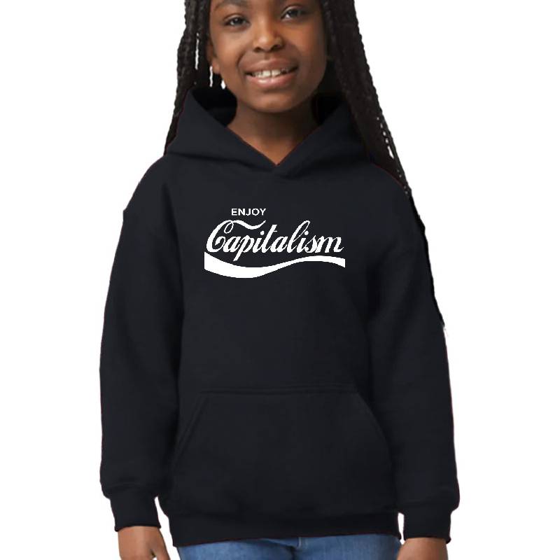 Enjoy Capitalism design artwork printed on Youth Hooded Sweatshirt with latest DTF technology. Our new management team will place serving you. We offer best online shopping experience to our customers with 30 days return and exchange policy. Shop with confidence at T-funny.com