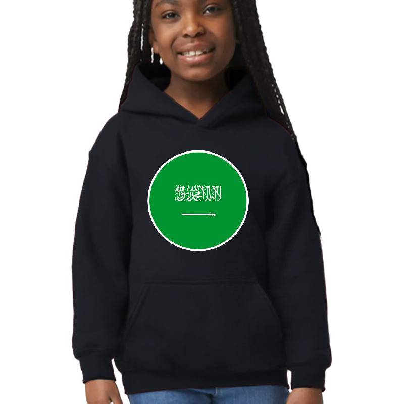 SAUDI ARABIA FLAG (Saudi Flag) design artwork printed on Youth Hooded Sweatshirt with latest DTF technology. Our new management team will place serving you. We offer best online shopping experience to our customers with 30 days return and exchange policy. Shop with confidence at T-funny.com