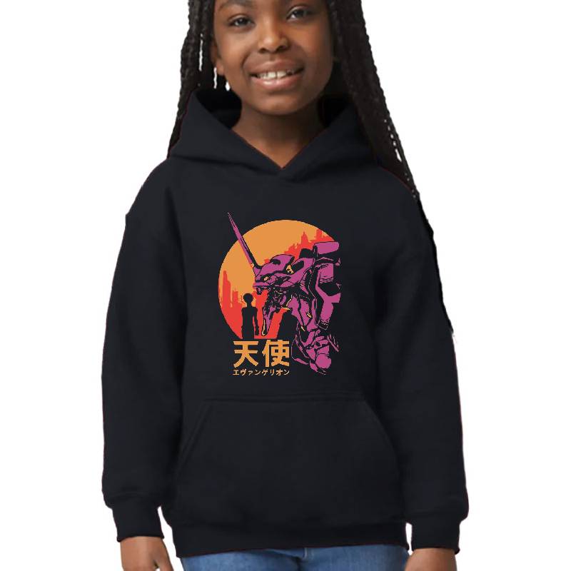 Neon Genesis Evangelion Retro Tshirt design artwork printed on Youth Hooded Sweatshirt with latest DTF technology. Our new management team will place serving you. We offer best online shopping experience to our customers with 30 days return and exchange policy. Shop with confidence at T-funny.com