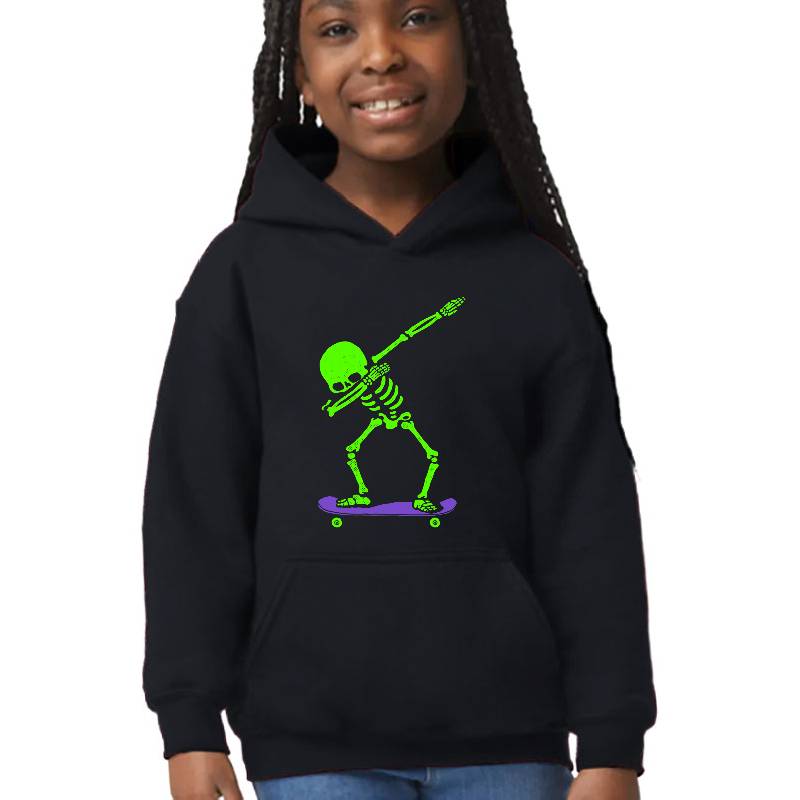 Halloween Dabbing Skeleton Skateboard Dab Skate Glow design artwork printed on Youth Hooded Sweatshirt with latest DTF technology. Our new management team will place serving you. We offer best online shopping experience to our customers with 30 days return and exchange policy. Shop with confidence at T-funny.com