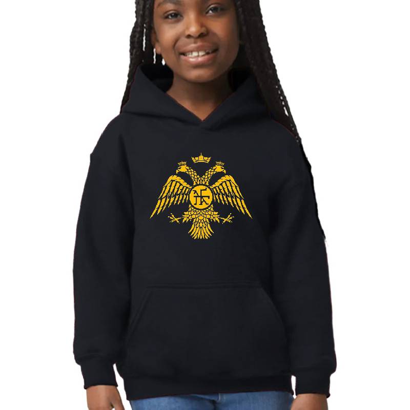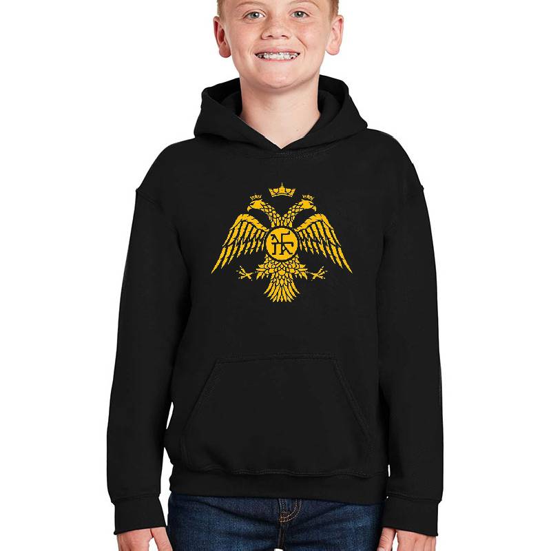 East Roman Byzantine Empire Palaiologos Dynasty Emblem design artwork printed on Youth Hooded Sweatshirt with latest DTF technology. Our new management team will place serving you. We offer best online shopping experience to our customers with 30 days return and exchange policy. Shop with confidence at T-funny.com