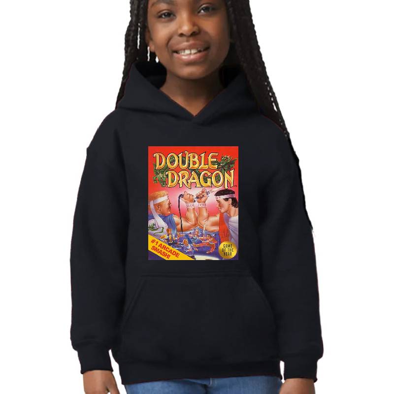 Double Dragon design artwork printed on Youth Hooded Sweatshirt with latest DTF technology. Our new management team will place serving you. We offer best online shopping experience to our customers with 30 days return and exchange policy. Shop with confidence at T-funny.com