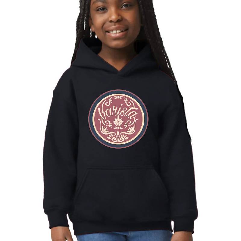 Barista Emblem design artwork printed on Youth Hooded Sweatshirt with latest DTF technology. Our new management team will place serving you. We offer best online shopping experience to our customers with 30 days return and exchange policy. Shop with confidence at T-funny.com