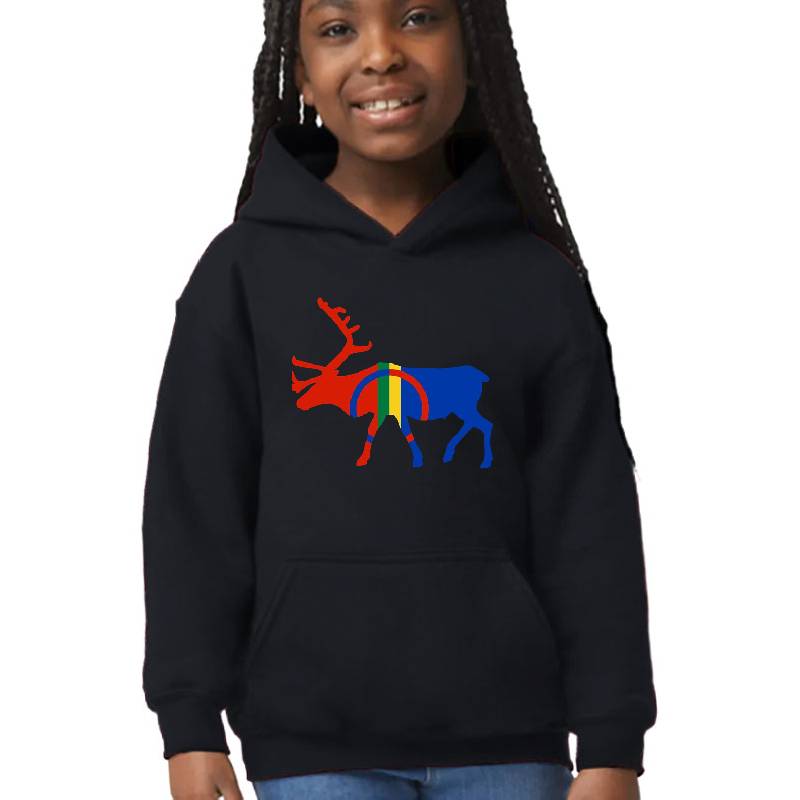 sami reindeer emblem. design artwork printed on Youth Hooded Sweatshirt with latest DTF technology. Our new management team will place serving you. We offer best online shopping experience to our customers with 30 days return and exchange policy. Shop with confidence at T-funny.com