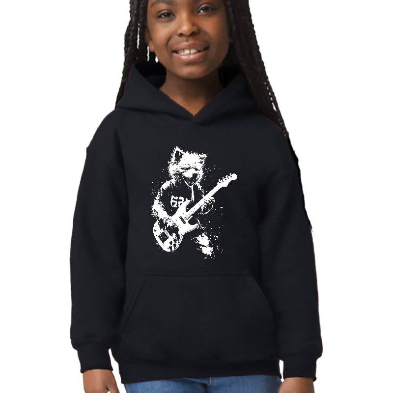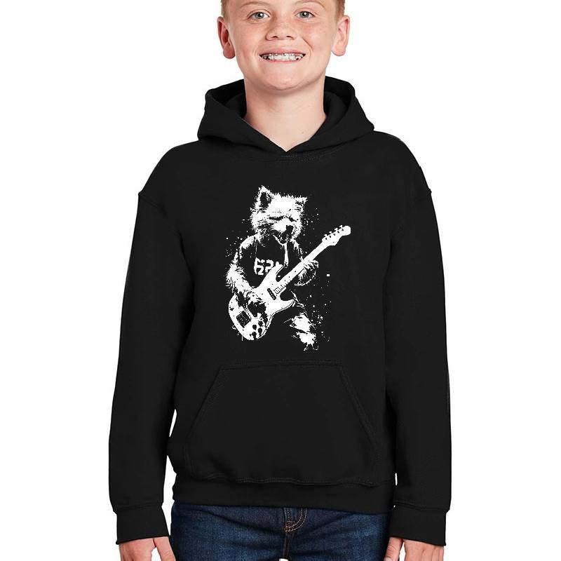 Distressed Dog Playing Guitar Punk Rock & Roll Grunge Art design artwork printed on Youth Hooded Sweatshirt with latest DTF technology. Our new management team will place serving you. We offer best online shopping experience to our customers with 30 days return and exchange policy. Shop with confidence at T-funny.com
