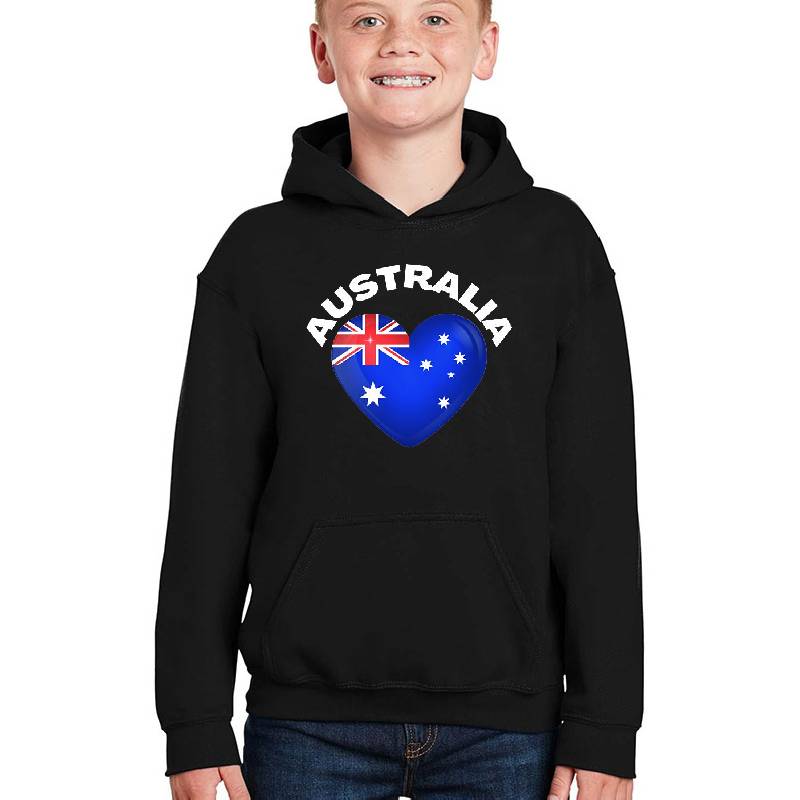 Australia Flag design artwork printed on Youth Hooded Sweatshirt with latest DTF technology. Our new management team will place serving you. We offer best online shopping experience to our customers with 30 days return and exchange policy. Shop with confidence at T-funny.com