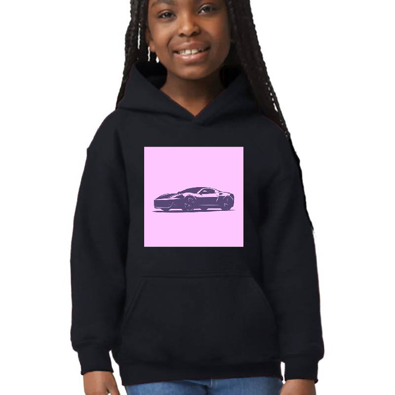 Speedster Emblem: Sport Car Silhouette Logo design artwork printed on Youth Hooded Sweatshirt with latest DTF technology. Our new management team will place serving you. We offer best online shopping experience to our customers with 30 days return and exchange policy. Shop with confidence at T-funny.com