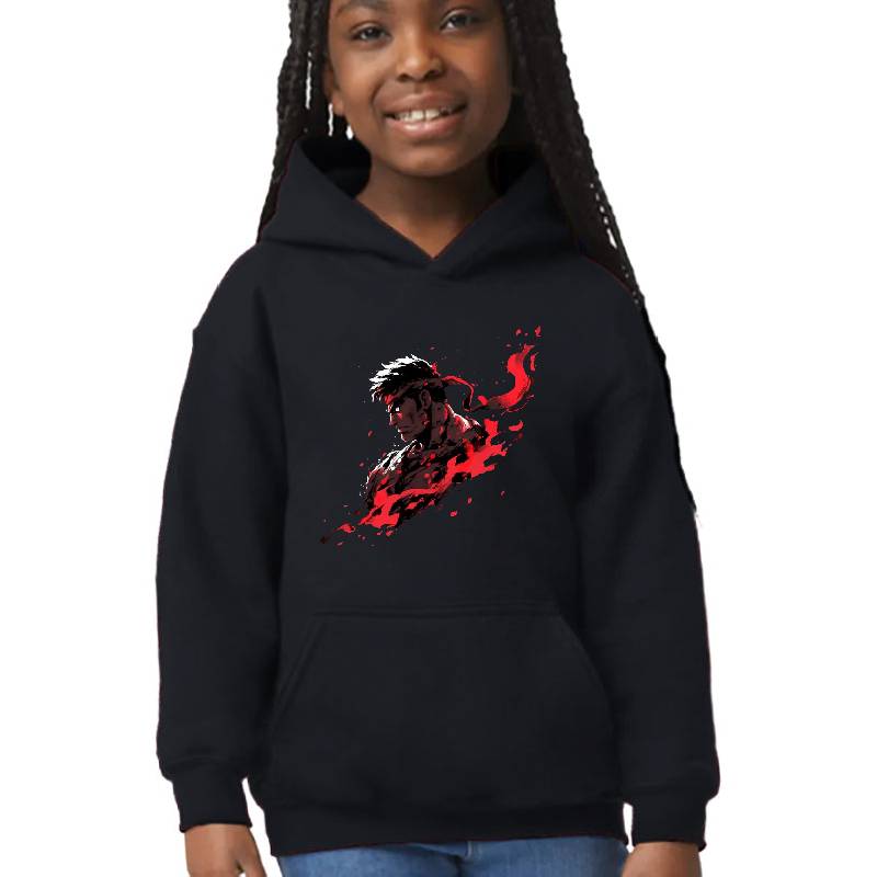 ryu street fighter design artwork printed on Youth Hooded Sweatshirt with latest DTF technology. Our new management team will place serving you. We offer best online shopping experience to our customers with 30 days return and exchange policy. Shop with confidence at T-funny.com