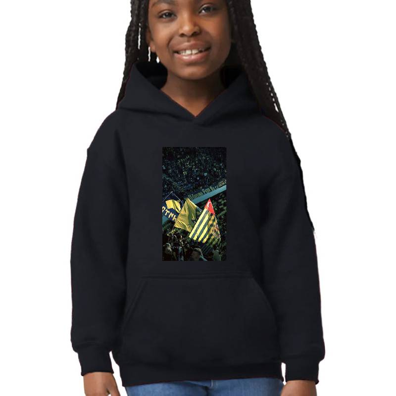 Flags of Fenerbahce design artwork printed on Youth Hooded Sweatshirt with latest DTF technology. Our new management team will place serving you. We offer best online shopping experience to our customers with 30 days return and exchange policy. Shop with confidence at T-funny.com