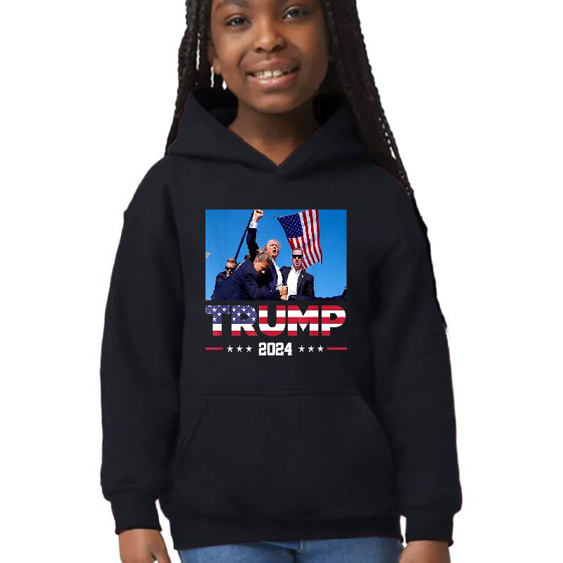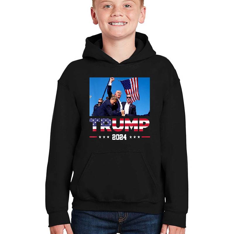 Donald Trump 2024 Survived Shot At Election Rally T-Shirt design artwork printed on Youth Hooded Sweatshirt with latest DTF technology. Our new management team will place serving you. We offer best online shopping experience to our customers with 30 days return and exchange policy. Shop with confidence at T-funny.com