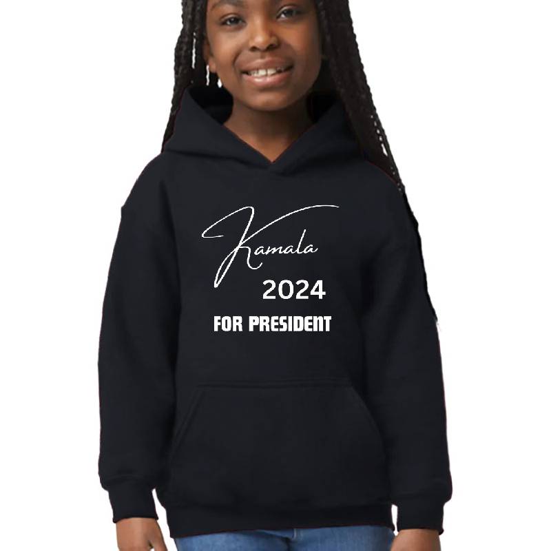 KAMALA design artwork printed on Youth Hooded Sweatshirt with latest DTF technology. Our new management team will place serving you. We offer best online shopping experience to our customers with 30 days return and exchange policy. Shop with confidence at T-funny.com