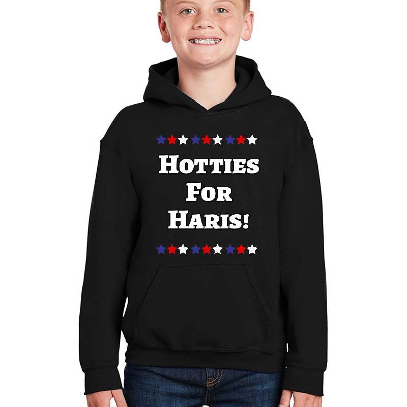 Hotties for Harris! design artwork printed on Youth Hooded Sweatshirt with latest DTF technology. Our new management team will place serving you. We offer best online shopping experience to our customers with 30 days return and exchange policy. Shop with confidence at T-funny.com