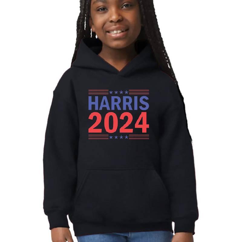 HARRIS 2024 design artwork printed on Youth Hooded Sweatshirt with latest DTF technology. Our new management team will place serving you. We offer best online shopping experience to our customers with 30 days return and exchange policy. Shop with confidence at T-funny.com