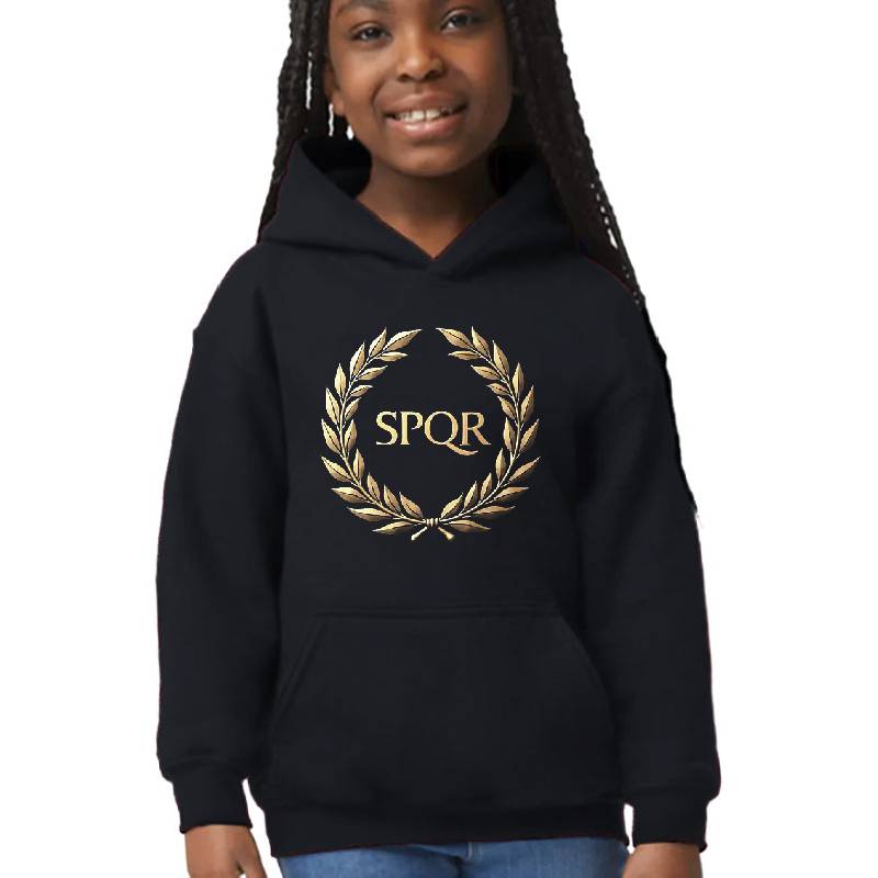 SPQR Roman Empire design artwork printed on Youth Hooded Sweatshirt with latest DTF technology. Our new management team will place serving you. We offer best online shopping experience to our customers with 30 days return and exchange policy. Shop with confidence at T-funny.com