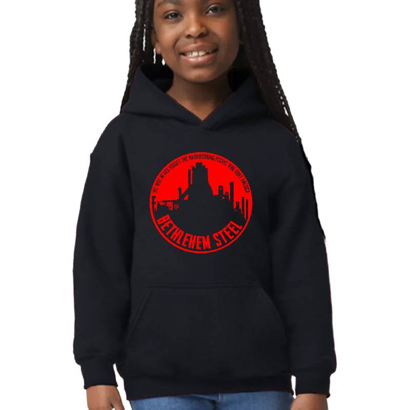 Bethlehem Steel - People Who Built America design artwork printed on Youth Hooded Sweatshirt with latest DTF technology. Our new management team will place serving you. We offer best online shopping experience to our customers with 30 days return and exchange policy. Shop with confidence at T-funny.com