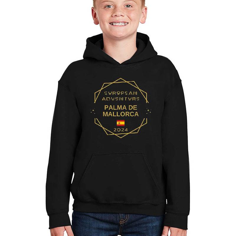 European Adventure Palma de Mallorca Emblem design artwork printed on Youth Hooded Sweatshirt with latest DTF technology. Our new management team will place serving you. We offer best online shopping experience to our customers with 30 days return and exchange policy. Shop with confidence at T-funny.com