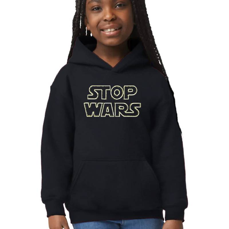 Stop Wars design artwork printed on Youth Hooded Sweatshirt with latest DTF technology. Our new management team will place serving you. We offer best online shopping experience to our customers with 30 days return and exchange policy. Shop with confidence at T-funny.com