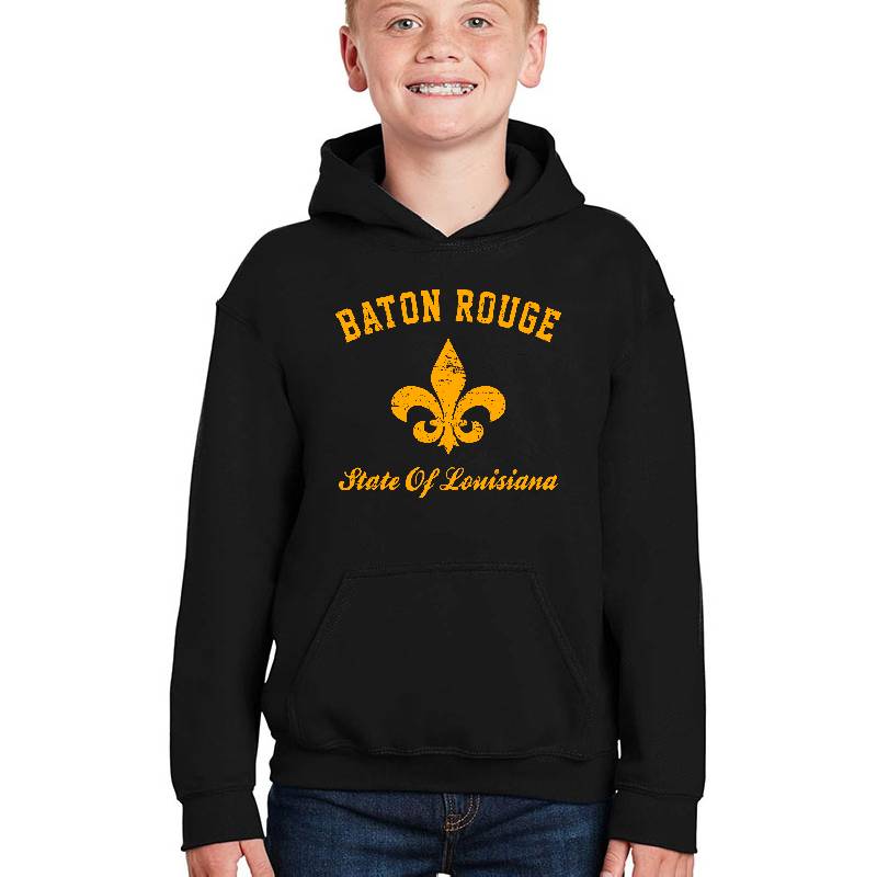 Baton Rouge design artwork printed on Youth Hooded Sweatshirt with latest DTF technology. Our new management team will place serving you. We offer best online shopping experience to our customers with 30 days return and exchange policy. Shop with confidence at T-funny.com