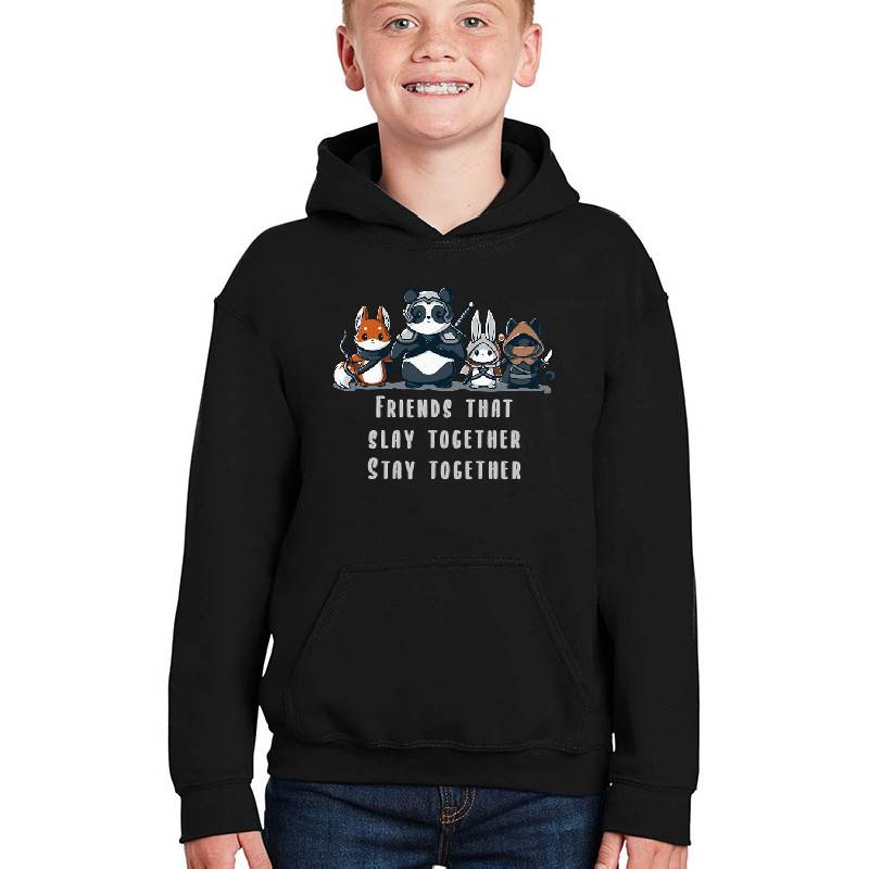 Friends who slay together, stay together design artwork printed on Youth Hooded Sweatshirt with latest DTF technology. Our new management team will place serving you. We offer best online shopping experience to our customers with 30 days return and exchange policy. Shop with confidence at T-funny.com