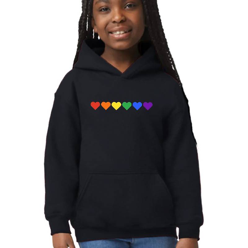 LGBT Rainbow flag hearts Equality Gay pride design artwork printed on Youth Hooded Sweatshirt with latest DTF technology. Our new management team will place serving you. We offer best online shopping experience to our customers with 30 days return and exchange policy. Shop with confidence at T-funny.com