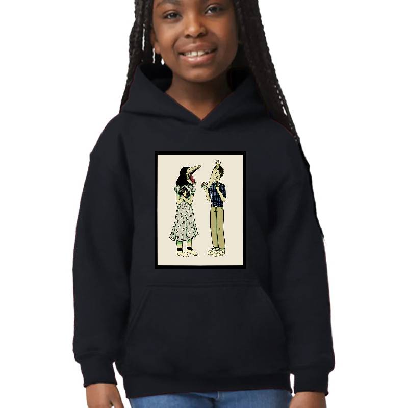 Beetlejuice Couple Barbara and Adam Maitland Coloured Print design artwork printed on Youth Hooded Sweatshirt with latest DTF technology. Our new management team will place serving you. We offer best online shopping experience to our customers with 30 days return and exchange policy. Shop with confidence at T-funny.com