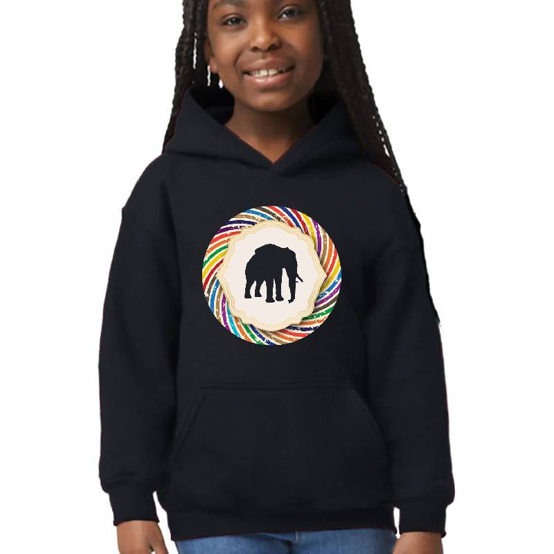Elephant logo emblem design artwork printed on Youth Hooded Sweatshirt with latest DTF technology. Our new management team will place serving you. We offer best online shopping experience to our customers with 30 days return and exchange policy. Shop with confidence at T-funny.com