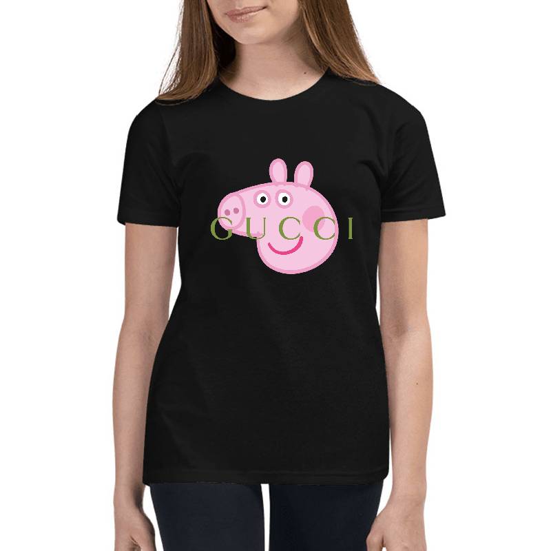 Peppa Pig Gucci design artwork printed on Youth T-Shirt with latest DTF technology. Our new management team will place serving you. We offer best online shopping experience to our customers with 30 days return and exchange policy. Shop with confidence at T-funny.com
