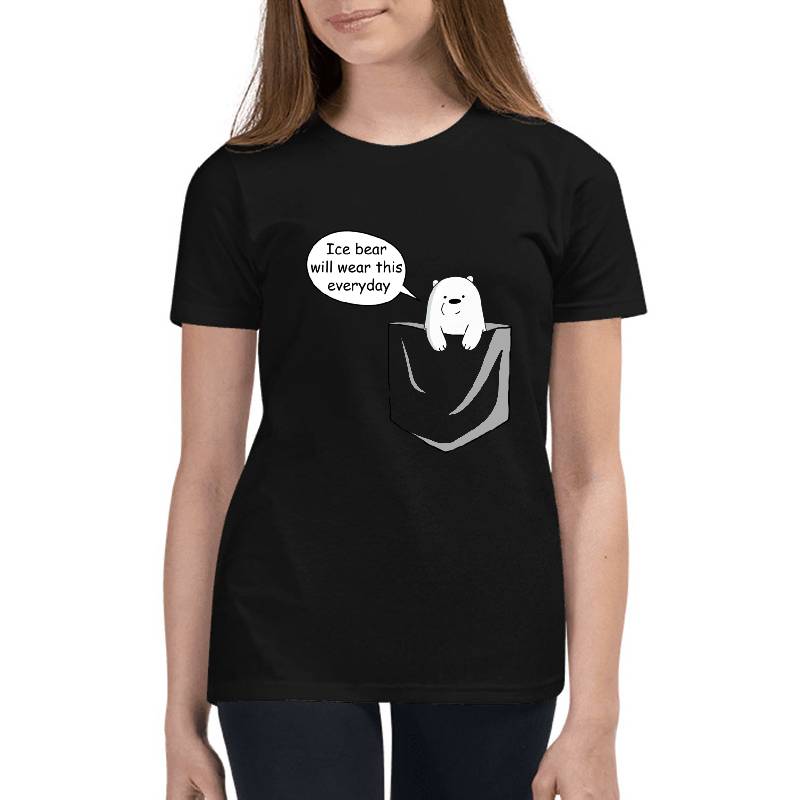 Ice Bear Will Wear This Everyday - We Bare Bears Cartoon Pocket design artwork printed on Youth T-Shirt with latest DTF technology. Our new management team will place serving you. We offer best online shopping experience to our customers with 30 days return and exchange policy. Shop with confidence at T-funny.com